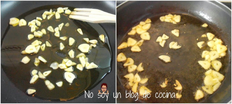 En una sartén con un poco de aceite, freír durante 1' los ajos (ojo! que se queman enseguida)