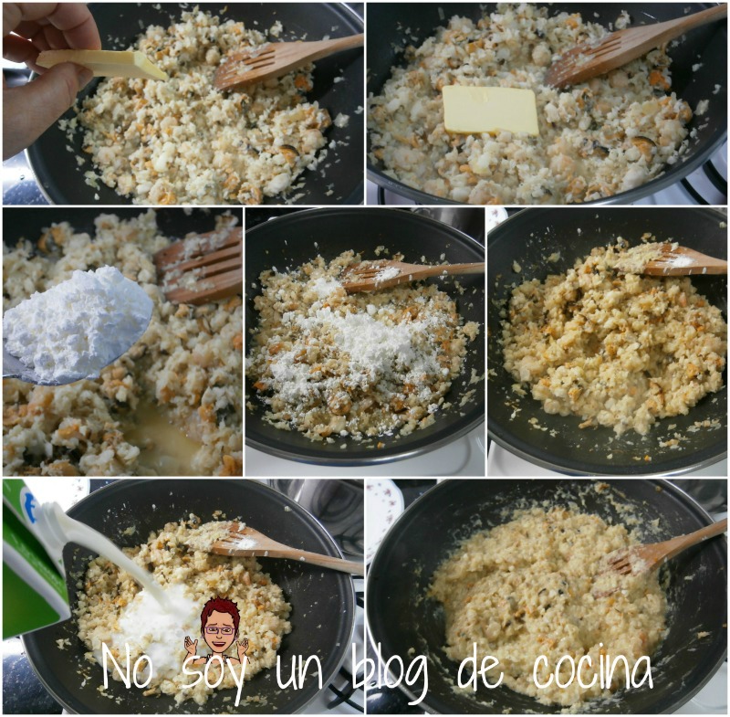 Ir añadiendo la leche, sin dejar de remover. En unos 5' aprox. todo el relleno habrá espesado un poco